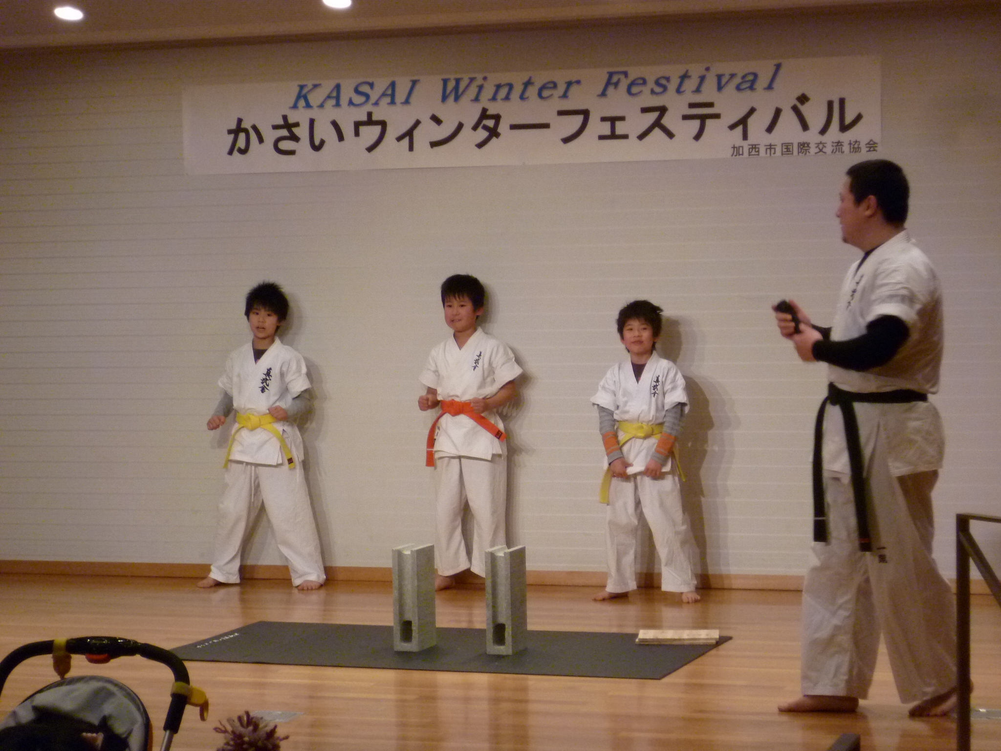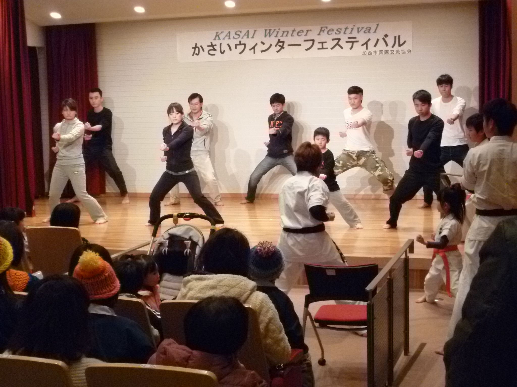 子どもたちには、外国人の方々が日本語スピーチや空手、楽器演奏や書道展示など
